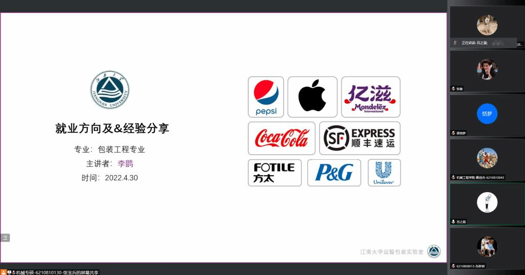 本次分享会邀请了5位在就业、读博升学、考公考编等不同方向取得优异成绩的2022届学生通过线上形式与大家交流,并答疑。3位来自不同专业研究方向的学生从不同角度跟在线学生分享他们的求职成功经验。签约宝洁中国供应链管理培训生的包装工程专业李鹍,他向大家详细讲解了包装专业的就业方向和就业优势,分享自己取得苹果、方太等公司offer的求职经验。签约特斯拉的机械工程专业姜昕蕙,她围绕应届生求职时间安排、机械求职方向以及求职准备,为同学们在求职中可能遇到的一些问题提供切身经验。签约卡特彼勒的机械工程专业杨书娟,她则详细讲解了招聘的前期准备和面试技巧。