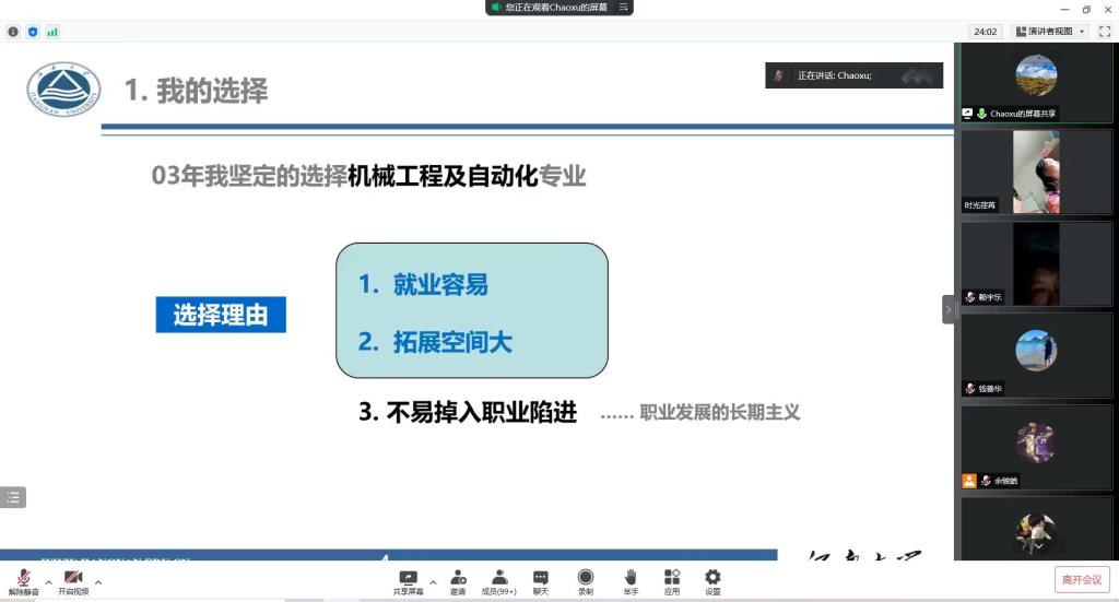 本次校友经验交流会的顺利举办使机械学子受益匪浅,纷纷表示要脚踏实地学习,立志以青年力量奉献机械制造强国。范同学会后表示:“通过与学长们的交流,我认识到了机械工程专业广阔的发展前景,自己会踏实学习,为光明前景而努力。”陈同学说到,“朝旭学长向我们展开了一幅更加长远的画卷,从事制造业的人要沉得下来,慢慢积淀而后薄发。”
