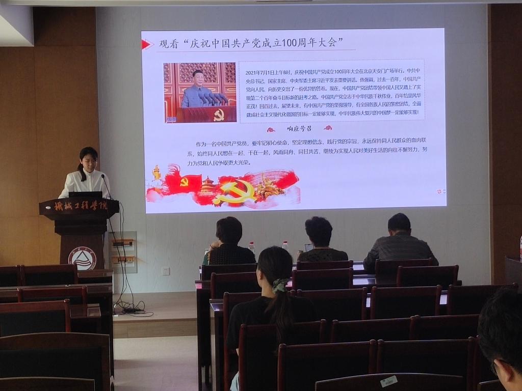 预备党员们依次上台汇报自己在一年考察期内思想、学习、工作、生活等不同方面的情况。本科生机械工程专业党支部的于祎子寒表明入党不是为了名和利,也不是一时的冲动和激情,而是为了更好地了解党,随时随地地为党和人民服务。作为一名中国共产党党员,要牢记初心使命,坚定理想信念,践行党的宗旨,永远保持同人民群众的血肉联系,始终同人民想在一起、干在一起,风雨同舟、同甘共苦。机电控制与检测研究中心党支部的余泽康则从疫情下的志愿服务活动入手,结合了伟大的抗疫精神,分享了在预备期一年内投身志愿服务活动,责任在肩,在疫情防控工作中发挥先锋模范作用的故事。