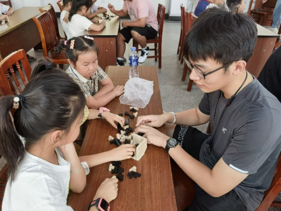 团队成员秉承“众‘智’成城“理念,策划举办了魔斗54T、“百舸争流,智慧晓丰”科普知识竞赛等益智类活动。以“学习+竞赛”的方式,增加青少年知识,带动青少年思考,培养青少年空间思维、逻辑思维等能力;以“球”为主要元素,开发诸多室内体育竞技类趣味活动,如花式保龄球、桌面冰壶、“运动”五彩气球等,通过分组竞技的方式展开体育运动,增添训练营的欢乐与活力,培养青少年间友谊;为培养青少年创造力,开展“树叶贴画”美育课堂、“五彩童年,红色纪念”编绳手工课堂、“共筑强军梦,翰墨抒情怀”暑期儿童书画活动,提升对美的表达力和鉴赏力;为培养青少年劳技能力,以“环保在行动”为主题,带领青少年在社区公园清理垃圾,并科普垃圾分类相关知识。
