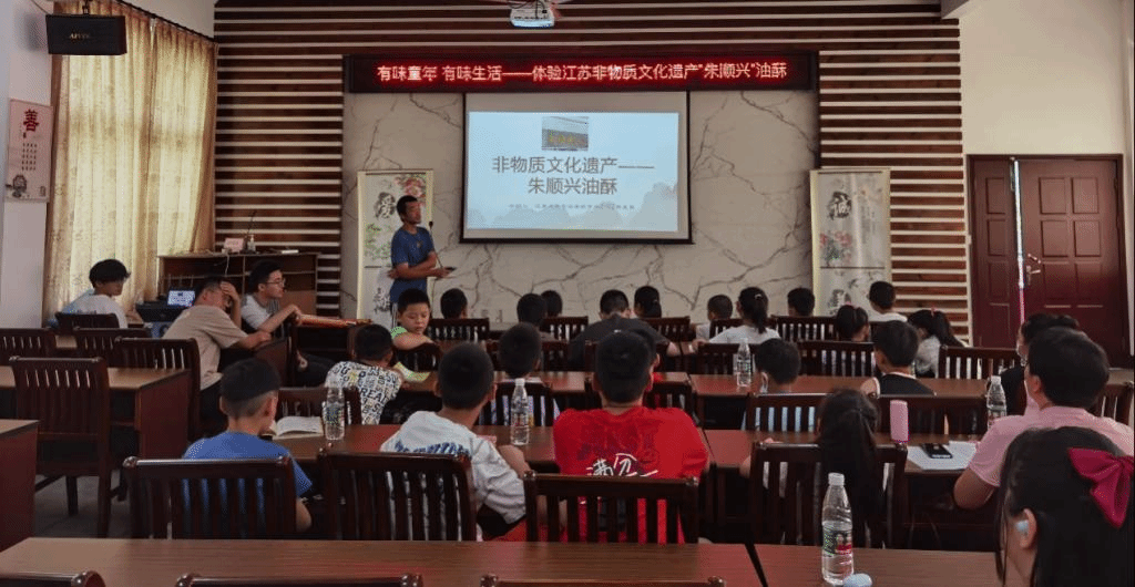 团队成员录制了江苏省非物质文化遗产“朱顺兴油酥”的相关视频,向青少年生动呈现位于惠山脚下的“朱顺兴”油酥店。讲解中,团队成员从两个传奇故事引入,激发他们强烈好奇心的同时,进行了油酥的介绍,并展示相关的制作方法与工艺流程。为让青少年们更加直观的体验非物质文化遗产的魅力,他们进行了油酥美食品鉴环节。
