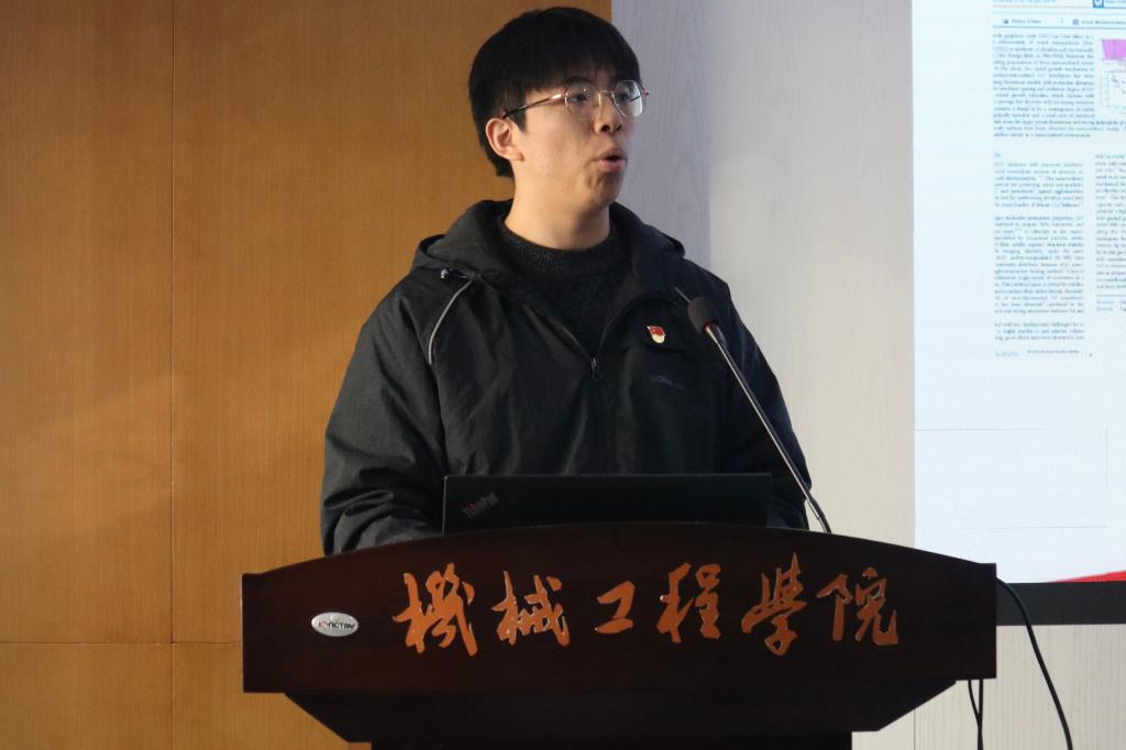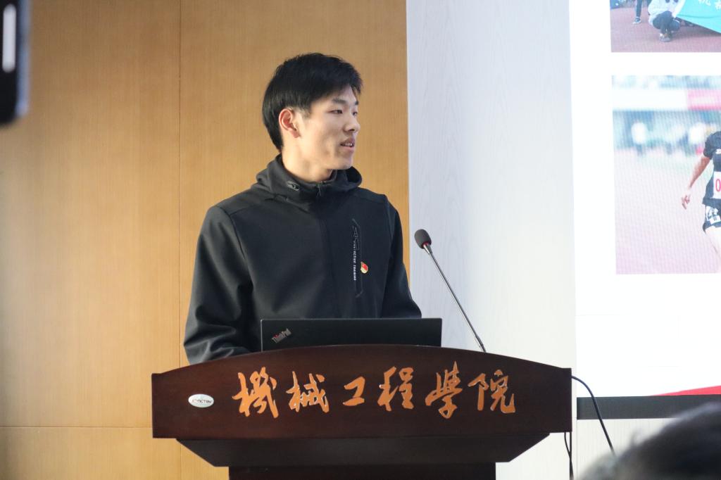 支部叶鹏、王鹏飞、彭鑫三位同学结合自身成长依次分享了对“智创时代机械学子应当如何作为”的思考。叶鹏本硕就读于det365登录网站主页,本科期间参与工程实践与创新能力大赛获全国银奖。他从精益求精在竞赛实践中寻求突破的经历讲起,分享了从本科到研究生的身份转变与适应过渡,鼓励大家以平常心面对生活中的各种困难与瓶颈,不退缩、敢担当,以积极心态突破自己,成长成才。王鹏飞荣获2022-2023年度国家奖学金,是一名全面发展的机械体育人,本硕期间共斩获校运会金牌11枚。他分享了“无体育,不机械”的成长故事,讲述了机械田径队从低谷到壮大再到突破的历程。他认为体育对机械学子意义重大,不仅体现在强健体魄,更体现在磨练意志、坚定目标、敢打敢拼、团队配合的体育精神,鼓励大家成为有韧性的机械青年。彭鑫硕士期间发表论文两篇,授权发明专利一项,参与国家自然科学基金等项目,现已签约远景能源,投身新能源风电行业。他介绍了自己的研究方向,分享了自己在科研与就业中立足国家需求、投身智能制造的选择。他认为青年成长中最重要的是锻炼发现问题、分析问题、解决问题的能力,以及着眼国家需要、将个人成长融入社会发展全局的担当。