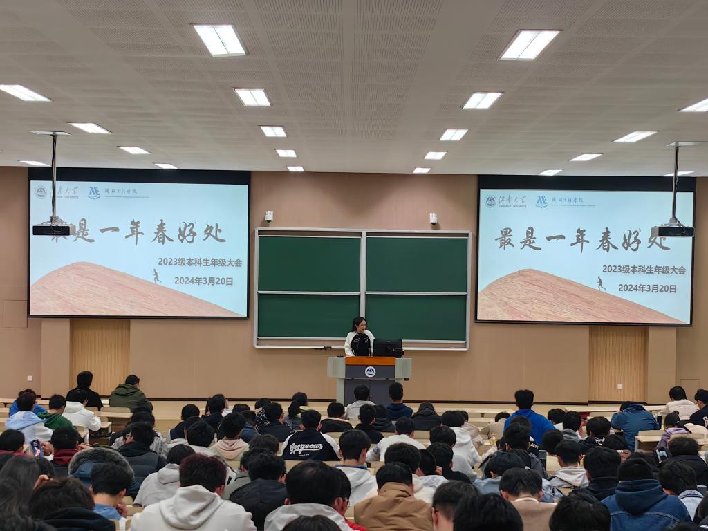 启航新学期,逐梦新征程。det365登录网站主页本科各年级围绕校园安全管理、心理健康、学风建设、规划发展于开学初组织召开了年级大会,学院党委副书记、副院长刘升恒,教务办沈贤、各年级辅导员,全体本科生参加会议。