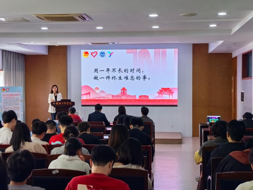 侍乔以“都青春,乡村振兴123计划”为题,介绍盐城市盐都区优越的地理位置、“国际湿地、沿海绿城”的城市定位、深厚的红色文化及蓬勃发展的城市经济,并作盐都地区“志愿服务乡村振兴计划”的岗位及地方支持政策宣讲。最后,他向同学们发出诚挚邀约,欢迎大家走进盐都、认识盐都,与盐都共赴美好。