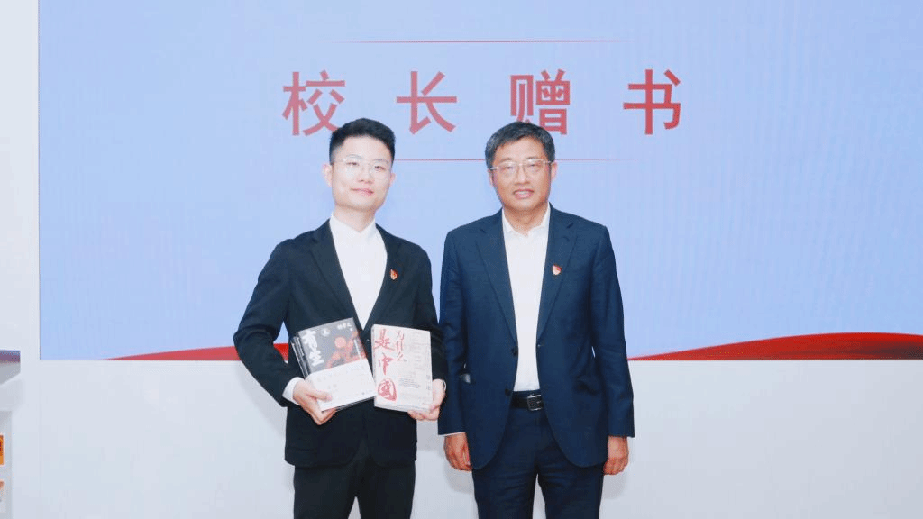 理论学习结束后,进行了校长赠书。陈卫向研究生党支部赠送了亲笔寄语的《为什么是中国》《有生》等书籍,希望机械学子能够矢志不渝,笃行不怠,在制造强国、科技强国的道路上作出新时代青年的积极贡献。