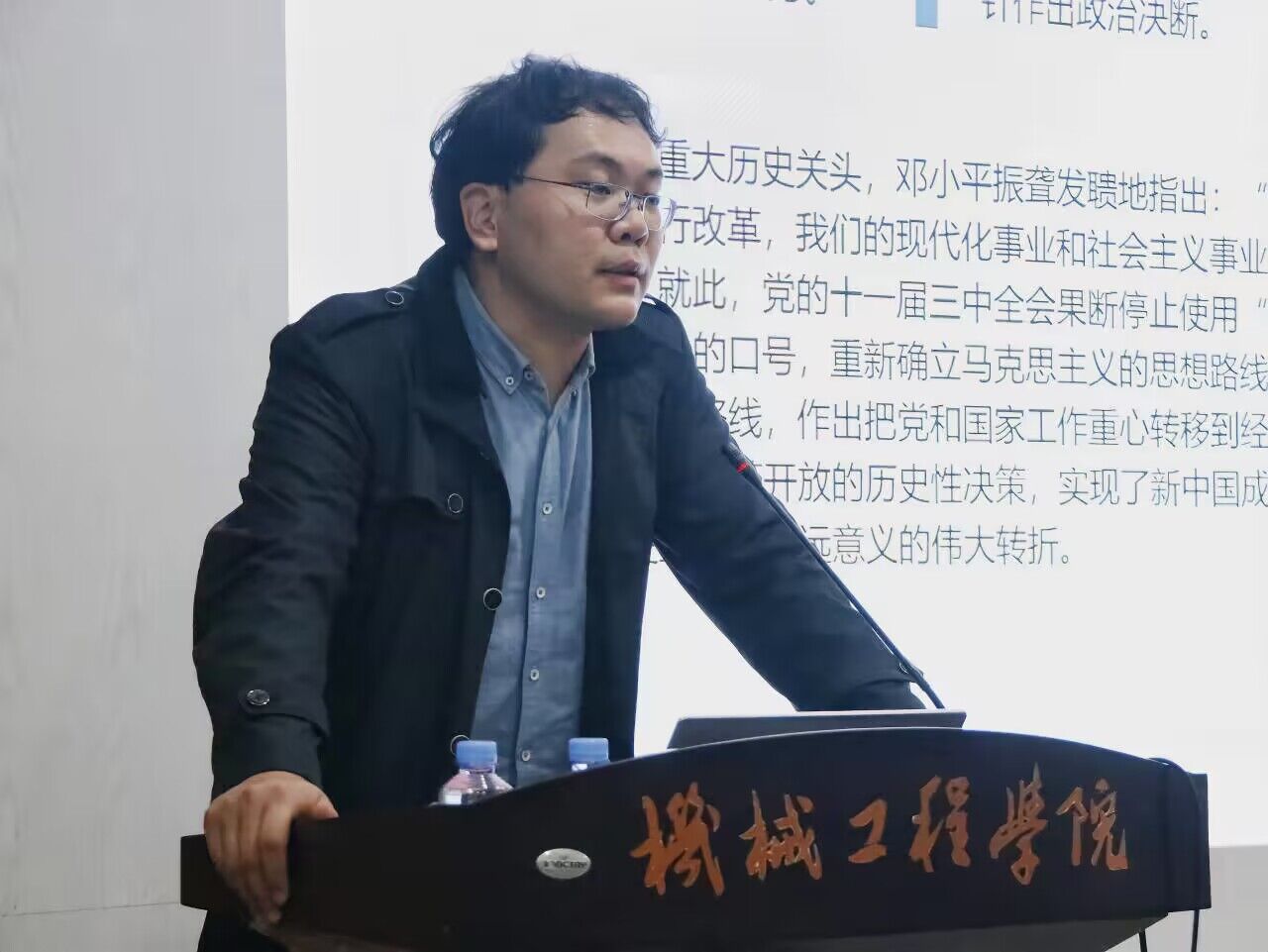 开班仪式后,学院邀请了马克思主义学院郑宇教授进行了以《新时代全面深化改革的现实起点和伟大成就》为主题的理论学习第一讲。讲座分为“改革开放取得的巨大成就是全面深化改革的基础”、“党的十八届三中全会吹响全面深化改革的号角”、“实行更加积极主动的开放战略”三个主题,讲述了改革开放的伟大历程与改革开放以来我国取得的伟大成就以及对未来的展望。他深入浅出的讲述让在场学员获益匪浅,纷纷表示,对这一阶段我国取得的成就有了更深的认识。