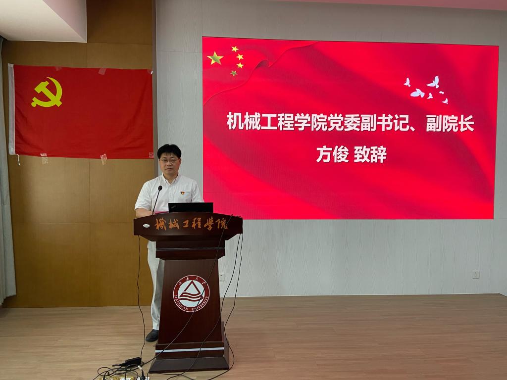 最后,方俊致辞。他强调,当前正逢喜迎召开党的二十大热潮中和学校为实现跻身世界一流大学建设行列的奋进期,他向新党员同志们提出三点希望:一是生逢其时,重任在肩,要自觉践行习近平新时代中国特色社会主义思想,把牢思想意识方向盘,做堪当重任的时代青年;二是要在学习科研中不断提高自身思想文化素质与专业知识,成为学习科研攻关的“领头雁”;三是要树立崇高的理想信念,矢志为共产主义事业奋斗终生,将青春融入党和人民的事业。