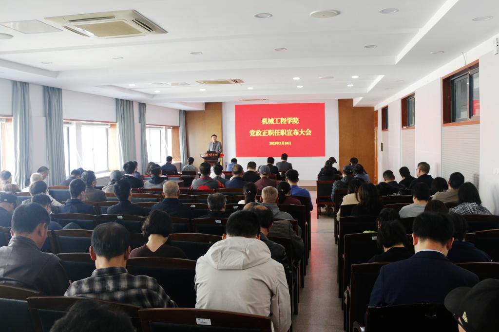 3月10日,det365登录网站主页党政正职任职宣布大会在机械楼301学术报告厅(机缘厅)召开,校党委副书记符惠明出席会议并发表讲话。全院教职工参加会议,会议由学院副院长王利强主持。