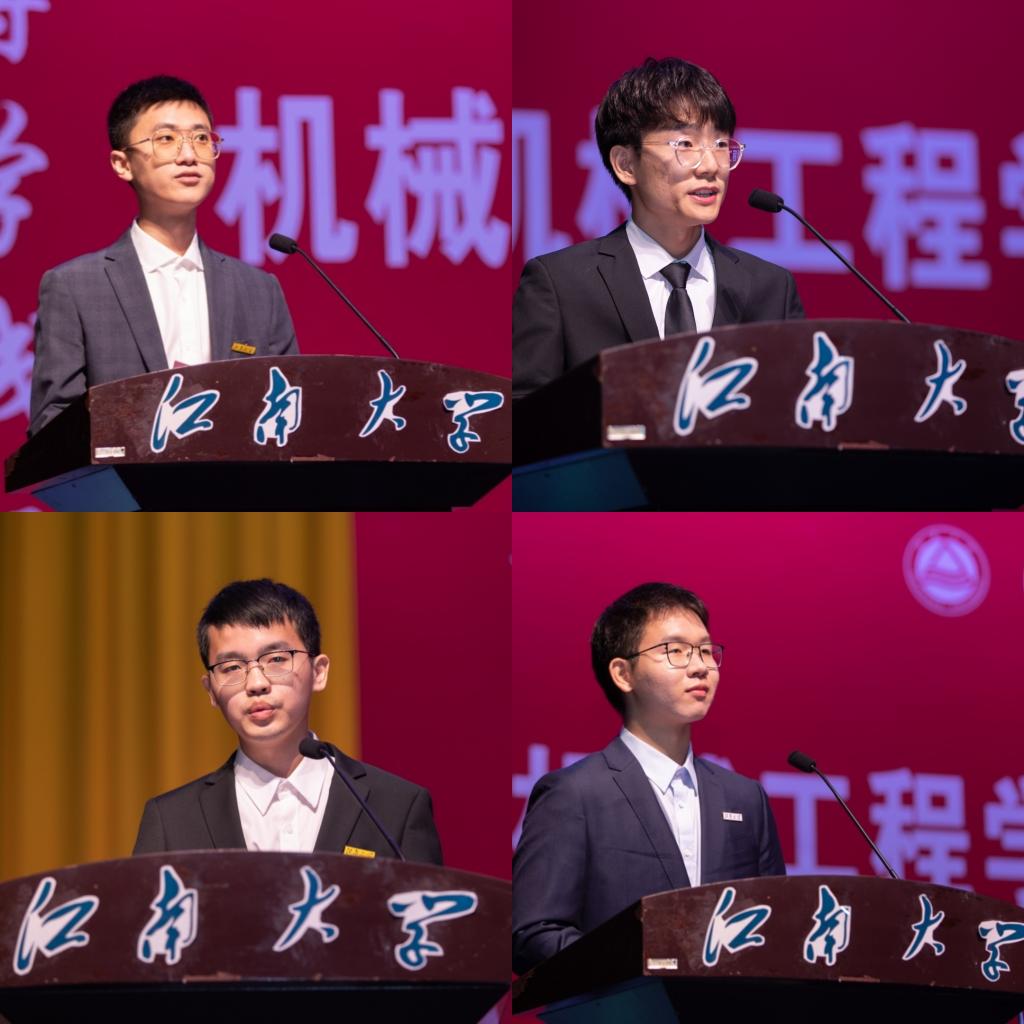 在校学生代表结合自身成长经历,向新生们分享求学心得。学硕2101班王谡阳建议新生做“脚踏实地的实干家”“勇于探索的冒险家”和“敢于担当的青年人”。机械1905班夏普松希望同学们能够尽快适应大学学习模式、提升时间规划能力、积极参与课外活动,以不变的初心,应对即将到来的机遇与挑战,创造属于自己的江南风华。在新生代表发言环节,学硕2202班陈广泽对未来的学习生活提出要求:遵从学术规范,恪守学术道德;明确学习目标,提升学术水平;保持健康生活习惯,保持良好精神面貌。机械2203班徐翥昂则描述了自己对江大的初印象和对未来的规划,希望大家遵循内心的方向,奋力拼搏,不负时光不负卿。