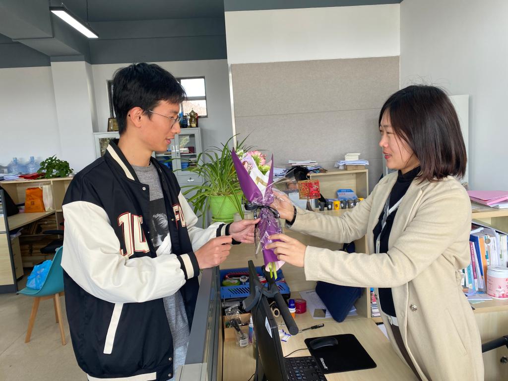 学院女同胞们每天在自己的岗位与角色上努力成为更好的自己:三尺讲台上有她们的睿智话语、研究室里有她们的学术讨论、办公室有她们的热心服务、志愿服务中有她们的奉献身影……det365登录网站主页研究生会学生们分工协作,为学院师生女同胞准备了精致花束,并手写了一份份真情实感的祝福卡片,在节日当天把鲜花和卡片送到了她们手中,向她们致以诚挚的节日问候,让她们感受到了暖暖的心意与满满的诚意。