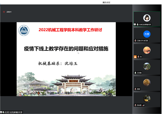 基础系主任沈培玉分享线上教学存在的主要问题和应对措施的思考