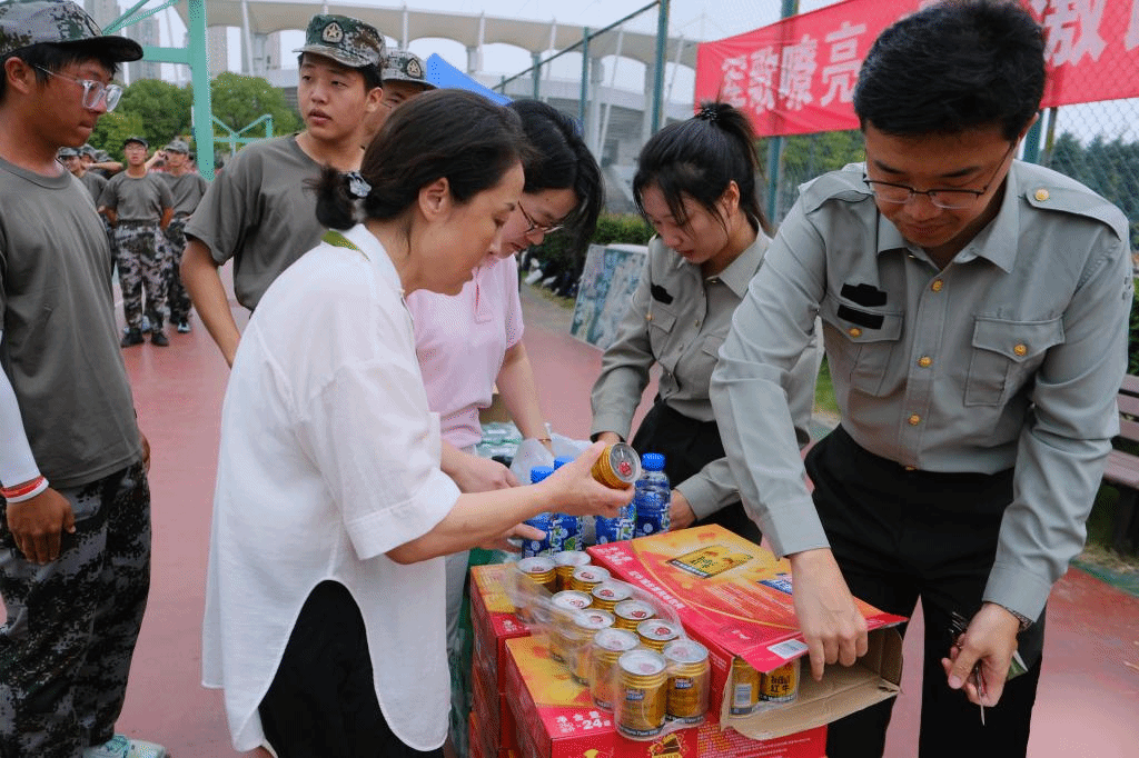 随后,学院领导向教官和全体同学分发了功能饮料等慰问品,送去烈日下的清凉,现场气氛热烈。