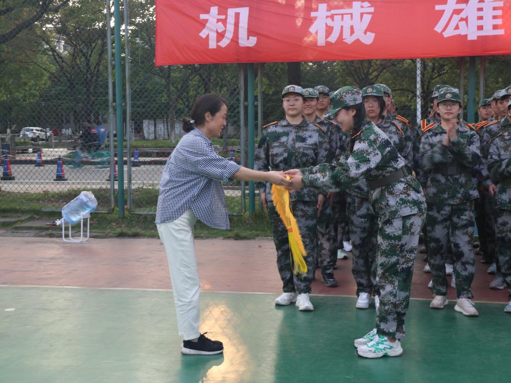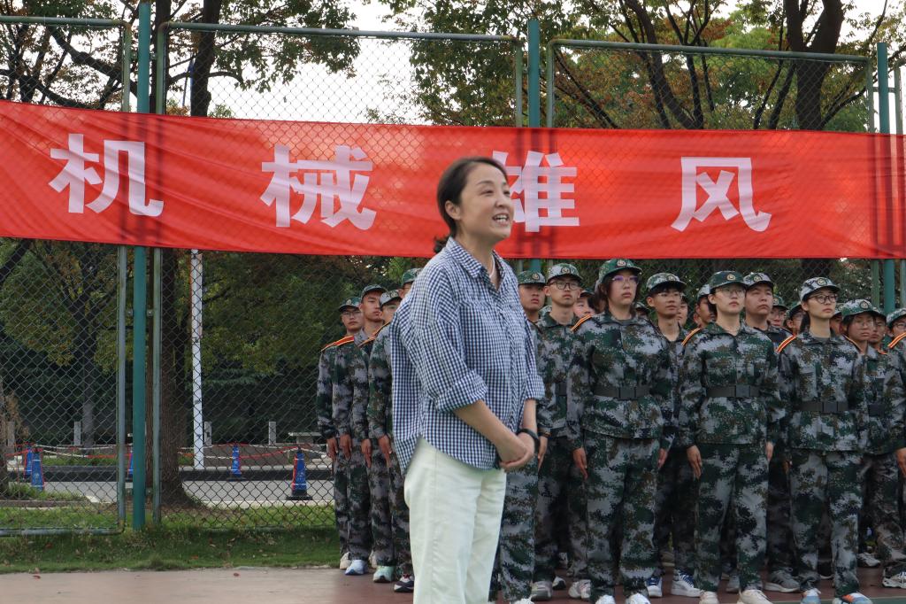 在教官的引领下,参训学生展示了近日训练的成果。整齐的队列、铿锵的步伐和响亮的口号展现了机械学子的军训成效与精神风貌。高雪梅为优秀军训排授旗并讲话,她对承训教官的辛苦付出致以崇高的敬意和诚挚的感谢,对365官网参训学生的高昂斗志与饱满精神状态进行表扬。她指出,军训有助于深化学生们对国防教育和家国情怀的理解,要学习军人的政治信仰和坚韧拼搏的精神,顽强拼搏,勇于担当。她鼓励同学们将这些精神带入日常生活,赓续det365登录网站主页的优秀传统。