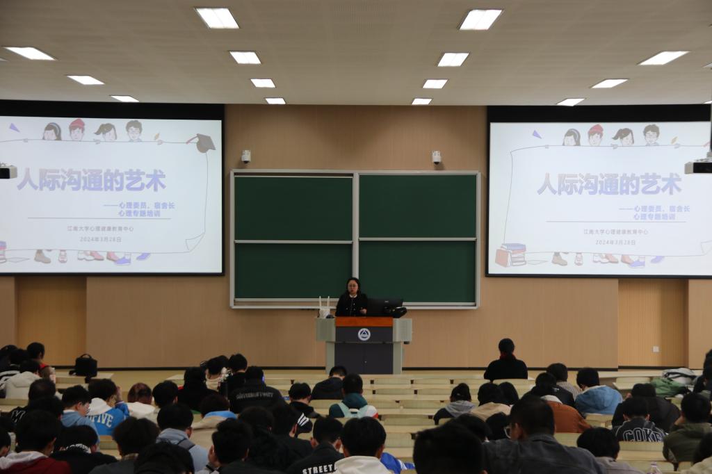 面向班主任、研究生导师及辅导员群体,邀请学校心理健康教育中心童玉梅老师作“把学生的心事放在心上——学生心理问题识别与早期干预”专题讲座,重点从“观察-询问-劝告-转介”四方面详细讲解了需要特别关心关注的学生类型、谈心谈话技巧和话术,以及危机干预中团队协作的重要性,给予老师们信心和支持。学院心理工作辅导员张倩瑶老师针对心理委员、宿舍长和课题组负责人群体,作《人际沟通的艺术》的讲座,结合具体案例讲授科学的工作方法及应对技巧,从哪些同学需要关心、怎么关心帮助同学以及如何进行自我关怀等三个方面,重点剖析了需要帮助的征兆,并暖心提醒同学们在关心帮助别人的同时,也不要忘记给予自己关怀。