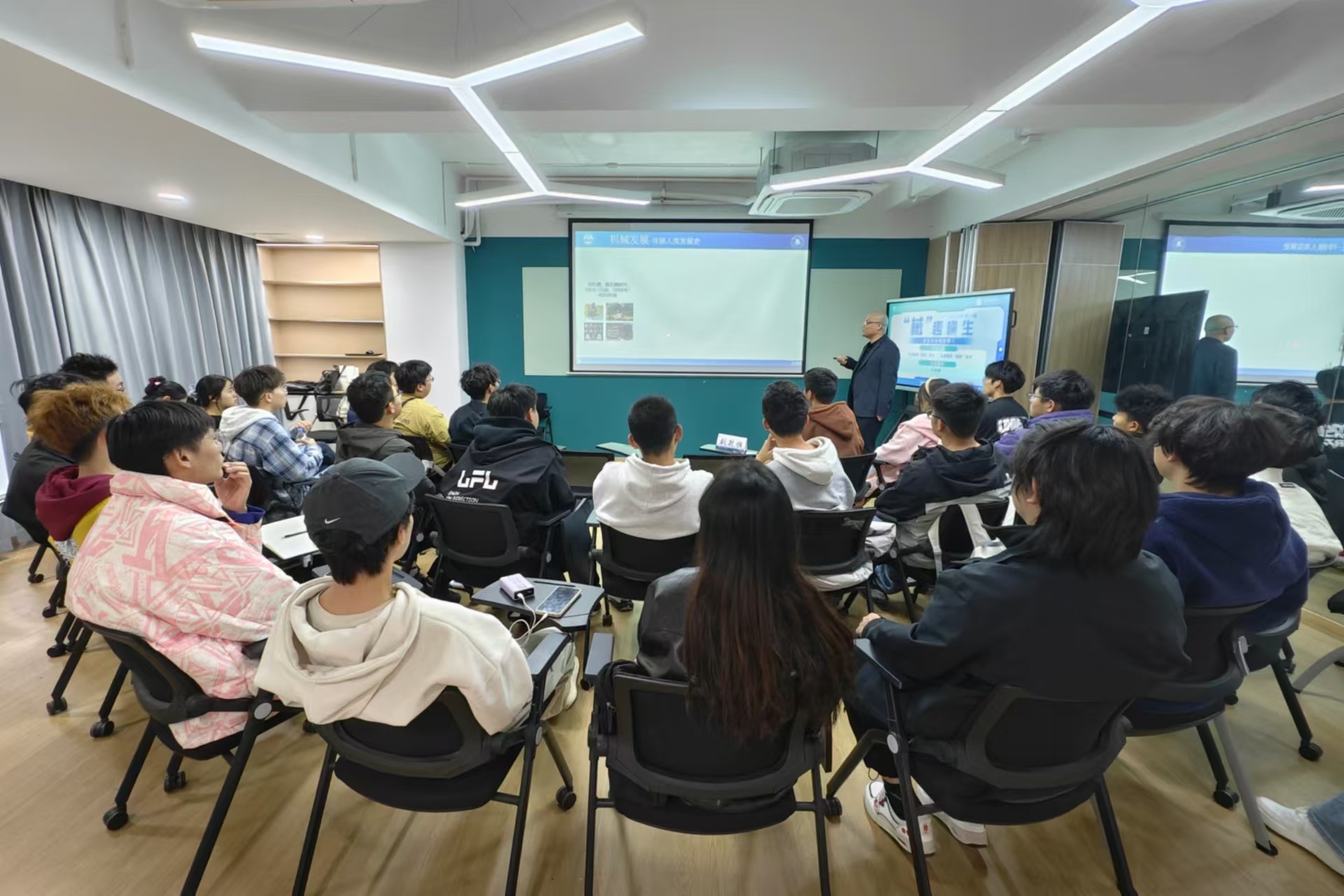 交流环节,同学们热情不减,踊跃地向于老师请教机械工程专业的课程设置、科研准备以及大创项目方向等问题。于老师都一一给予了详细且专业的解答,同时他鼓励在座同学们要重视基础课程学习、夯实专业基础,在深度思考与躬身实践的双重磨砺中精准探寻自身的兴趣所在。
