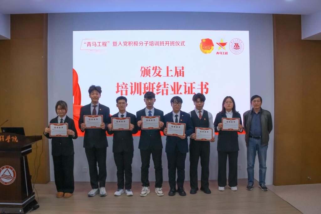 开班仪式在庄严的国歌声中拉开帷幕。黄正明为上届学员代表颁发结业证书。机械2102班朱国霖作为上届优秀学员代表发言,他分享了自己在青马班学习期间的成长与收获,希望新学员能够珍视这难得的学习锻炼机会,以积极主动的姿态投身于理论培训与社会实践活动之中,在实践创新的广阔天地里学有所思,学有所悟,学有所得。