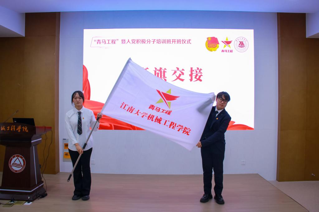 李诗炜带领全体学员宣誓,“坚定马克思主义信仰,做新时代中国特色社会主义合格建设者和接班人,坚持实学实干,促自我全面发展……”铿锵誓言饱含热忱,表达了青马学员的坚定信念。宣誓完毕,本届班长刘淑涵与上届班长朱国霖交接培训班班旗。