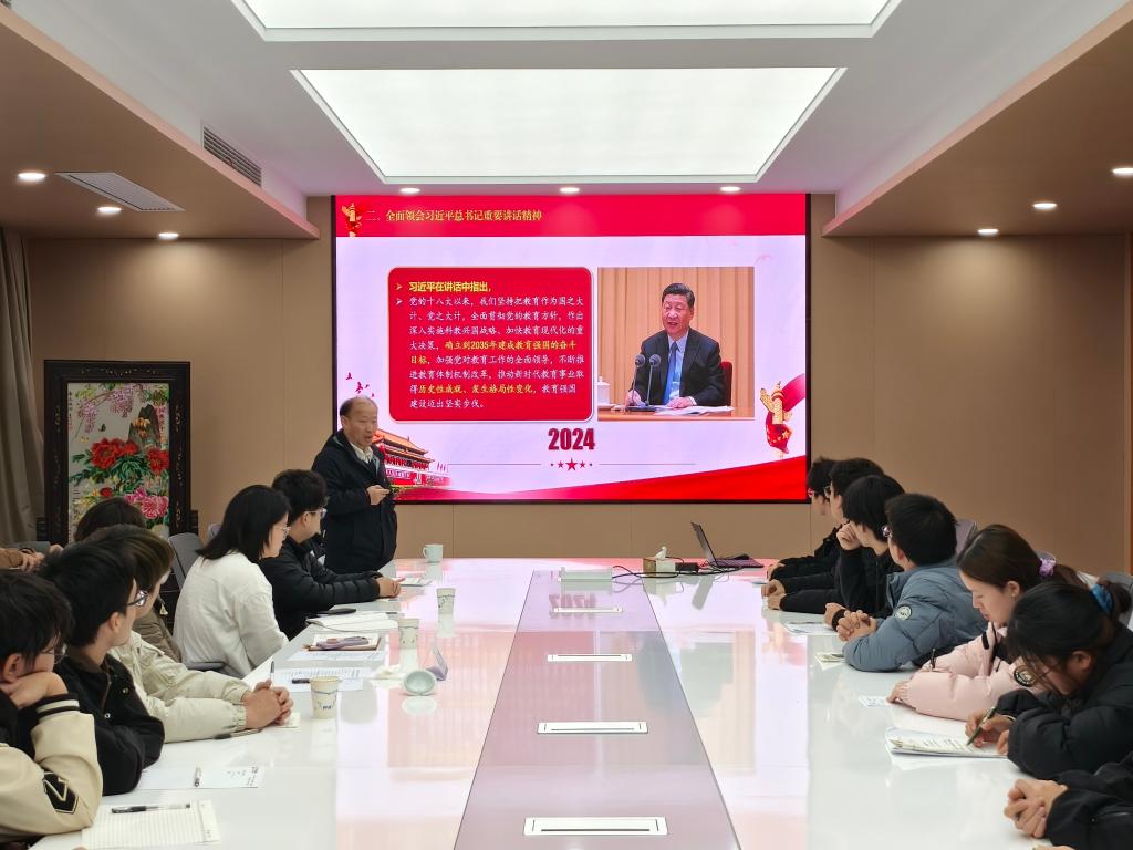 顾正彪回顾了两次全国教育大会的重要内容,介绍了新时代教育事业取得的历史性成就、发生的格局性变化,通过对教育强国科学内涵的阐释和教育强国建设重大关系的解读,强调立德树人根本任务和教育强国战略目标的重要性。同时,顾正彪围绕我校的学科建设、人才培养、双创教育、卓越工程师学院建设和“一体两翼”办学格局等方面的工作,向师生们描绘江南奋进蓝图。教育兴则国家兴,教育强则国家强,顾正彪寄语年轻学子厚植爱国主义情怀、关注社会发展,积极参与志愿活动、传承弘扬中华文化,宽以待人、自律自省,扎实专业知识、提升综合能力,以坚定信心与昂扬斗志奋进担当。